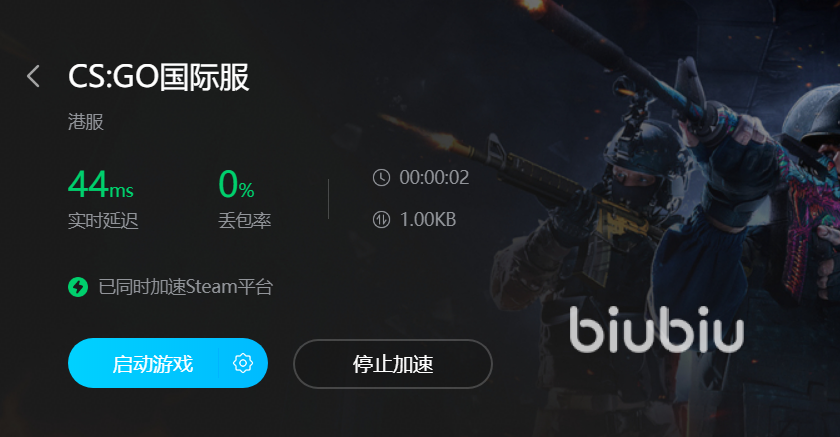 国际服csgo比国服对网络要求更加严格,很容易出现网络波动情况,这也是闪退的主要原因,包括在玩家登录游戏时也会出现类似加载缓慢等类似的状况,用上biubiu加速器后登录界面会顺畅许多,战斗时角色行动也会更流畅,操作手感都会上升很多,其实这才是正常情况下你真正的水平。打算用加速器的玩家,之后启动游戏就可借助biubiu加速器来完成,不用再从客户端打开,也能节省一点时间。