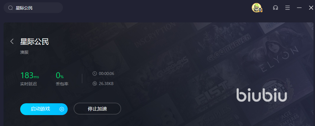 现在界内很多加速器发展重心依然放在国内,因为游戏本体服务器就在国内,就算本身的加速效果不过硬也不会有显著效果,所幸就将众多不被大众所知道的国外游戏所PASS掉,若是之前有经常用加速器的同学应该会有感同身受,星际公民它的热度不算很高,众多人也是因为找不到支持的加速器才来寻求帮助,而biubiu加速器无论是针对国内外的任何一款游戏都有自己的加速方法,而且在游戏库的录入中也是毫不马虎,输入名字就能定位到。