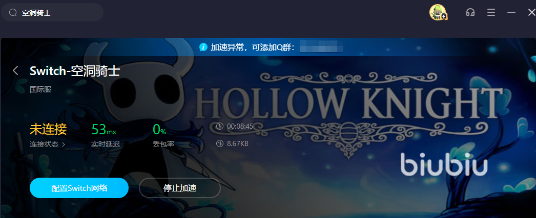 空洞骑士目前只登陆了两大平台,分别是Switch和XBOX两大独立平台,所以它的操作都是靠外设连接而不是靠传统的键鼠,所以许多主打网络游戏的加速器就很少会有提供空洞骑士的服务,不过既然选择了biubiu加速器它就不会令人失望,打开加速器输入你想要玩的游戏名称,它就能将同名游戏各个平台的加速服务都展现出来,这不,现在这两个客户端正好还处于限时免费阶段,意味着玩家们现在来到biubiu加速器就能免费去体验使用,效果也不会因为不收费而大打折扣。