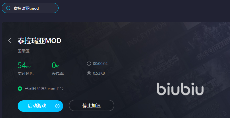 泰拉瑞亚的首代作品在人气上是高于tmod版本的,所以这款游戏不能说是面向大众,而是一些熟知游戏玩法且想掌握更多玩法的老玩家,此类玩家更愿意去钻研一些看似小众实则系统成熟的游戏,但最终却在加速器的选择上遇见了闭门羹,因为很多加速器它只加速国内外的大型知名游戏,像是这种分支的mod版本根本没有,而biubiu则是实现了一视同仁,只要有玩家就会将加速提上日程,搜索就能呈现出来。