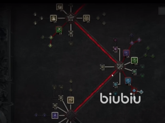 其次巅峰系统,巅峰点数和暗黑3的不太一样,暗黑4里面的角色最高等级是100级,而当我们达到50级的时候,随着人物等级继续提升,每升一级,就会获得4点点数,达到100级,一共有200点点数。每个职业基于不同的技能流派,都有6个不同的巅峰面板,比如说德鲁伊,狼德有狼德巅峰面板,熊德有熊德巅峰面板。