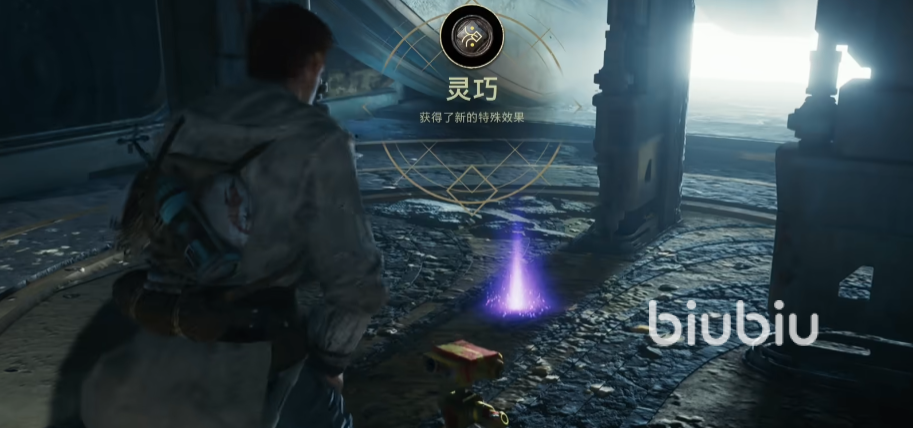 在显现桥的中间,取出第一个机关内的机关球,放入前方的机关上,催动机关就可以升到楼顶,这样沿着路一直走,就可以收集到一个信息磁盘。再回到之前的电梯,取出机关球,丢到右手上方发出金光的圆圈中,就能进入身后上锁的地方,取出放射体——勤勉,这样一来所有道具都收集完毕了,当我们直接走到出口,收集到新的特殊效果——灵巧,理性密室便结束了。