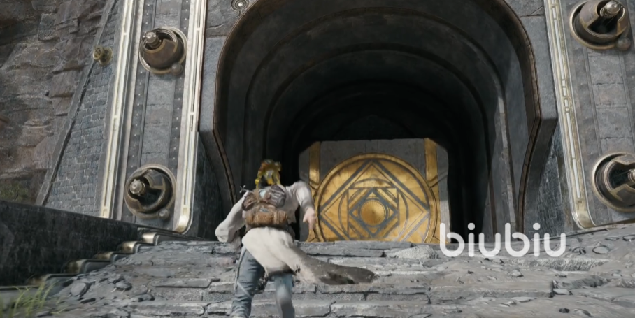 这也算通过了第一个试炼,但是目前并不需要走到这里。我们掰动机关,将机关球挪动到另外一边,右边的道路就会显现,使用原力可以破坏右边的墙体取出第二个机关球,再回到机关处,将机关掰回左边,走过去,把第二个机关球丢到左边二楼的机关上。我们再折回入口爬上绳索,走右边的夹缝来到二楼的机关处,可以看到这里还是有两条路,右边的尽头是有一个机关的,所以我们走右边。
