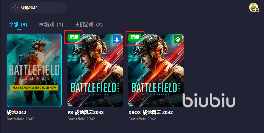 大型战地游戏的操作方法不应该只局限在键盘和鼠标上,虽说操作简单可体验感很难去跟手柄所比拟,可作为主机游戏能否也实现加速呢?答案是能,而且还是免费!通过biubiu内搜索可以发现战地2042的PS版本和XBOX版本处于限免状态,虽说不是永久时间段的免费,可起码能让新用户有个长时间的使用过程,而且在了解后发现目前biubiu针对主机类游戏全部都采取了限免的活动政策。