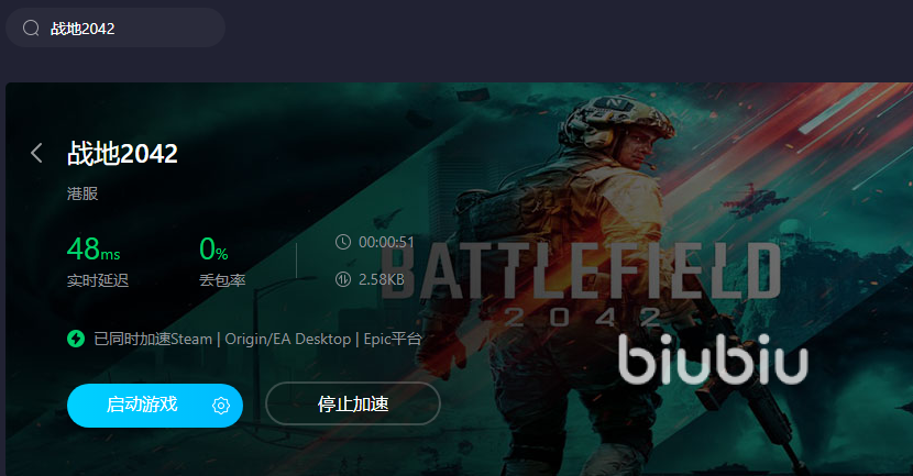战地2042的赛季匹配模式有些类似传统的“天梯”系统,也是通过在线网络匹配的模式来开房间进行竞技,所以它能做到脱离剧情制作属于自己的风格,战场地图随机匹配兵种却能自己来选择,单局游戏维持在几十分钟内也不会给人特别累的感觉,大部分玩家都想在赛季结束之前拿到一个好的分数保留下去,但只要谈到竞技主题延迟就是老生常谈的问题,在同等能力下延迟高的角色就是要比延迟低的角色反应更慢,所以为了能让你的技术100%展现出来,biubiu加速器应该为你而服务。