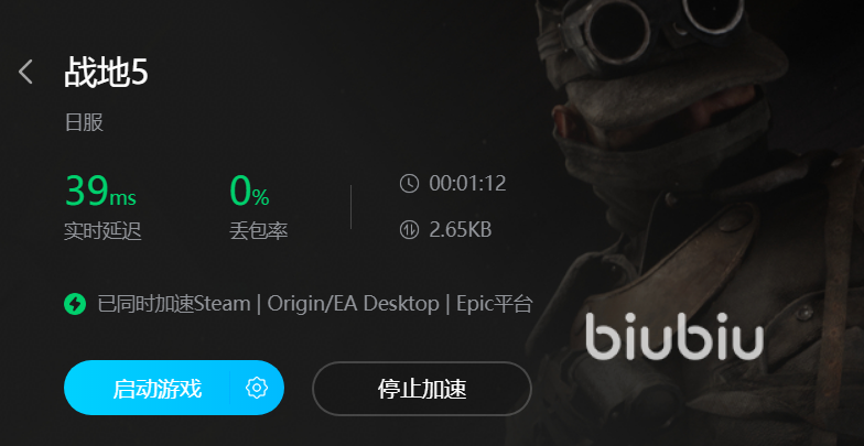 想要在战地5中崭露头角,那么就需要带上biubiu加速器才行,不然没加速器的情况下,卡顿、闪退的问题就是家常便饭,这样多尝试几次就不足为奇了。当biubiu加速器用上后,再进入游戏马上就能感受到不同,首先就是登录游戏的加载速度,然后就是进入对决的手感,延迟低了、卡顿情况也不见了,中途也不会再闪退,全得益于加速器的辅助,biubiu加速器能够让服务器在在最合适的网络环境中流畅运行。