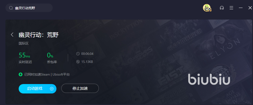 Biubiu当中没有过多的无用设定,凡是能在界面内看到的,都是有关游戏以及加速相关的事情,就比如输入“幽灵行动”它就会将其系列下的游戏一一列出,而想要精准搜索“幽灵行动荒野”的话就只会呈现一款游戏,且在上方还能看到它将PC电脑端游戏以及主机类游戏进行了分类,先抛开现在加速器很少有能做主机游戏加速的不谈,biubiu的这份细心就为用户节省了大量时间。