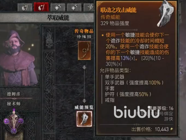 另外一个最大的区别就在于,所有的传奇它们的威能都是可以提取出来的。我们在看见一件橙色装备时,词缀和威能是要分开看的,这些被提取出来的威能还会根据类型分类。比如攻击的威能就可以放在武器手套戒指项链上面,而资源类的威能只能被置入戒指上。