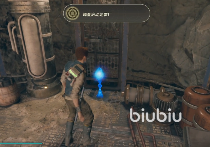 我们出去后,会有几个B1-机器人,解决掉。再次让小机器人弄来一个炸弹,我们带着它,来到右侧的一个石门前,炸开,进入里面,就会提示我们调查滚动地雷厂传闻结束了。