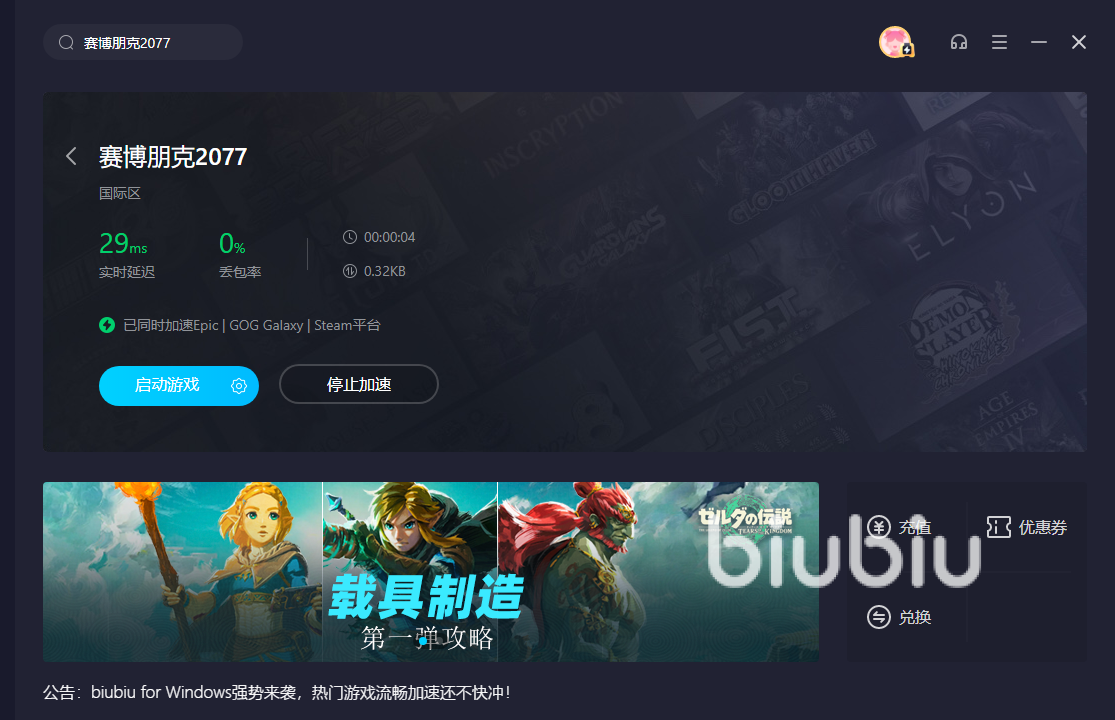而且下载使用biubiu加速器的好处还远不止于此哦,因为biubiu加速器并非只能为赛博朋克2077这一款热门游戏提供加速服务。大家如果下载了biubiu加速器以后就能看到,现在市面上发行的玩家们所钟爱的大多数热门游戏都可以在biubiu上找到对应的加速渠道,下载一个biubiu加速器可以玩家们在玩很多游戏时也可以享受加速服务,非常的划算。