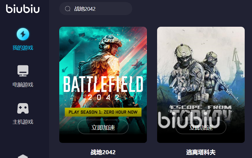 有时候大家使用biubiu加速器的时候可以发现它还有另外一个作用,那就是充当找游戏的好去处。因为平台需要满足到大家加速各种游戏的需求,因此游戏库内的游戏就相当丰富了,而且还在一直更新的。大家平时玩久了的游戏,可以在这找找其他游戏也是可以的,热门游戏也好,新款游戏的也行,百分之八九十的游戏都有,没有的话可以找biu仔反馈,让平台早日更新。