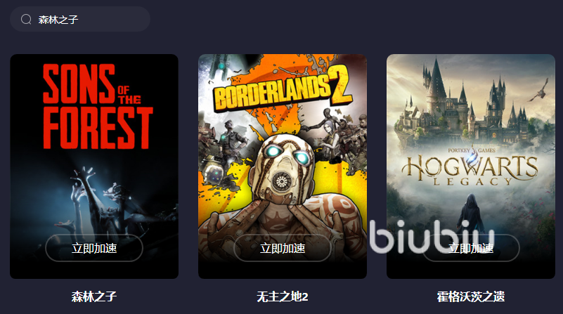 而大家在使用的时候,也是只需去点击上文的链接,就能够去安装并进入其中了,直接去搜索游戏名为它开启加速即可,小伙伴们不仅能够通过它享受游戏加速带来的服务,像各方面的功能上也是做的尤为突出,还可以把喜欢的游戏添加到列表里面,这样下次使用的时候就能够更加的方便了,而不用在重复去查找游戏。