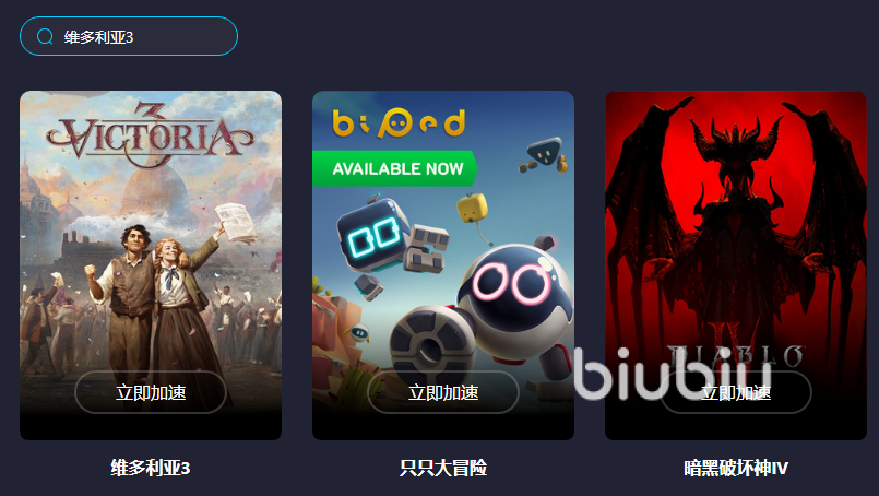 作为维多利亚3的忠实粉丝之一,小编自己就经常通过biubiu加速工具来运行游戏,大家也清楚在游戏中是有着许多的机制和元素的,包括收集资源以及发展经济等等,如果说不能有个好的条件来帮助自己发展那么就会非常的难受,而这个时候要是自己的网络还掉链子,那么整个体验都将会变得非常差,所以小编建议大家是可以去使用该加速器来帮组自己解决问题的。