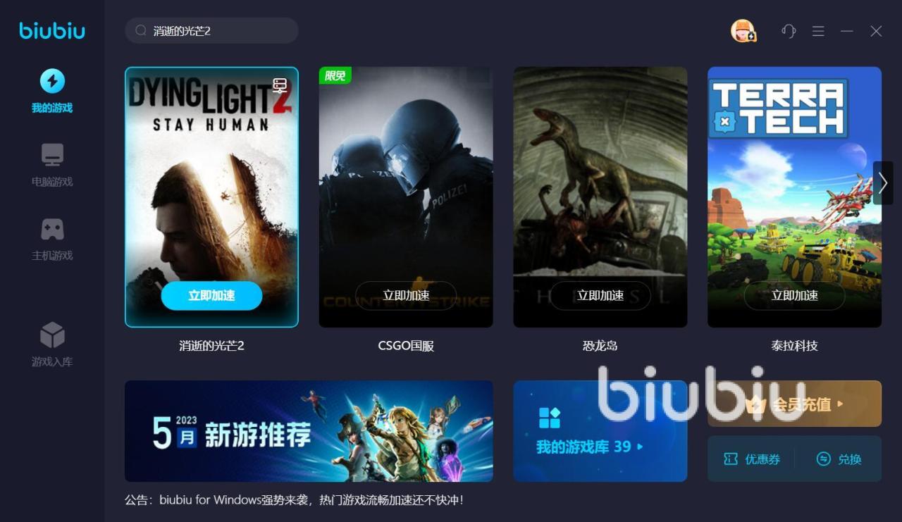 对于这种开放世界游戏来讲,处在联机状态的时候,如果无法确保网络顺畅,很可能会导致地图加载出错,或者是莫名其妙地掉线,尤其是在进行多人对战的时候,很容易出现卡顿的现象。所以,如果你是想联网,和真人一同进行冒险,那么加速器还是很必要的,biubiu加速器支持多款热门网游,如果你想给消光2加速,要完成的步骤也不多,先用检索功能,找到这个游戏,添加到软件的主界面,然后点击“立即加速”就可以了。