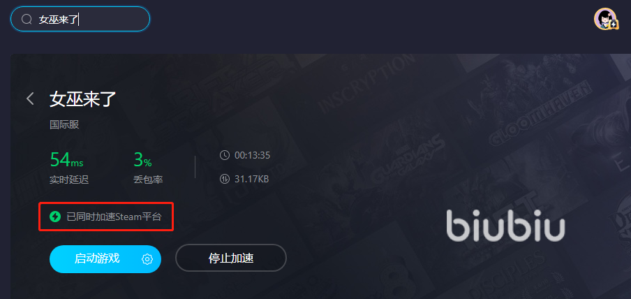 有些同学可能会吐槽一个问题,那就是如果只能加速“女巫来了”游戏内的话,那么在登录Steam的时候岂不是会很卡?因为平台登录和加载也需要加速器,而这个问题就不必多虑啦,玩家们大可在还没开启游戏之前就先去把加速器打开,此时下方就会有“同时加速Steam平台”的字样,就代表现在Steam和游戏都处于加速状态下,是无需再要求用户单独找加速器重新加速的。