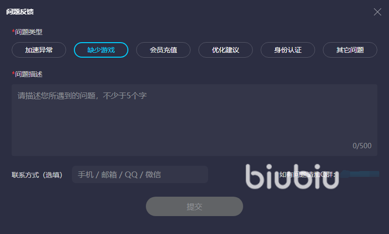 当然了,每一个玩家因为使用情况的不同,难免也会遇到各种各样的问题,而平台的反馈机制则会起到重要作用。大家随时可以反馈遇到的各种情况,甚至可以将游戏库当中没有的游戏进行提交,随后平台则会为大家进行处理。相反,市面上很多小型加速平台支持的游戏数量少,更没有办法通过反馈的方式来增加游戏作品。