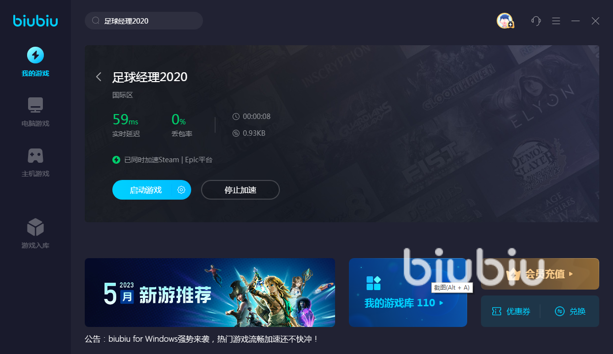因为这款游戏目前只在国际区开有服务器,所以国内玩家登陆时候出现进不去情况也是很正常,此时可以利用biubiu加速器跨服功能来解决。只要下载好biubiu软件之后,在资源库中输入游戏全称,找到之后点击进入加速页面,从该页面中打开客户端,就会获得专属加速通道。通过这里无论是登录以及登录以后运行都会变得极其流畅,不需要玩家再进行其他任何路径方面设定,自动就完成了跨服操作。顺便也解决了因为跨服而带来的延迟过高问题,在足球场上过高延迟肯定会影响球员发挥。