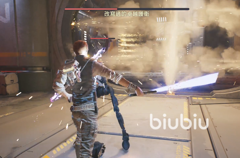 接着我们来到地下区域,解决水利的小怪,然后爬上右侧平台,获得原力精华。根据游戏内的提示一路前进,最终来到了卓亚·索恩的面前,解决掉它,我们会拿到一个特质发射器,解锁十字护手架式技能。然后穿过一个大门,解决里面的敌人,我们会发现又回到了货物装卸甲板,再甲板上和波德对话。