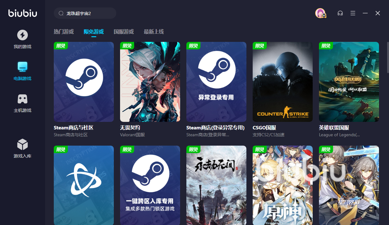 看懂以上内容自己就能说出为什么龙珠超宇宙2进不去的原因,不过本篇也是将对应的解决方法和工具分享了出来,要是想迫不及待地加入游戏队列中,先做好准备工作将biubiu下载到电脑上,以后还能直接通过加速器去启动游戏。