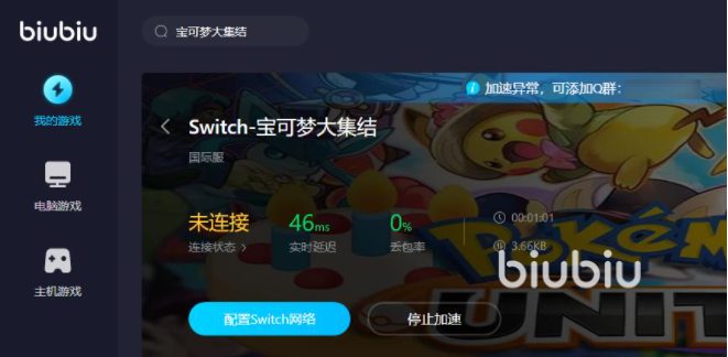 2023年06月05日 16:37 来源:法杖乐大舌贝相信选择很多的80后都看到宝可梦这个童话片,宝可梦这个ip不仅充满了童年的回忆,而且拥有皮卡丘、火焰龙等也是儿时的梦想,这个游戏就能圆儿时的梦。为什么宝可梦大集结进不去,因为这个游戏是switch游戏,需要借助sw平台链接电脑,在传输过程中会有延迟,延迟数据高了就会导致无法进入游戏,那么如果是biubiu的用户可以直接【启动加速】就能很好的解决这个问题。