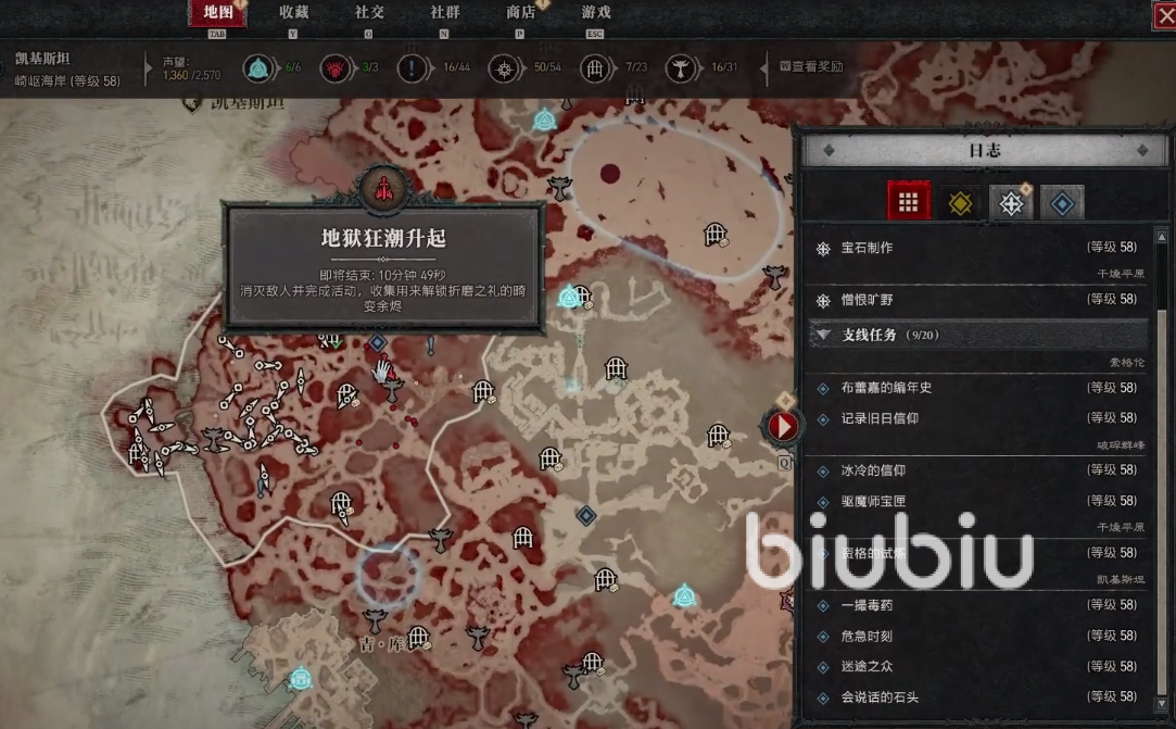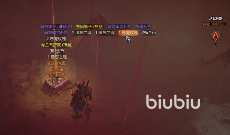 先来看下这个东西的描述,虽然是一种很难找到的草药,但是它是稀有的制作材料,在升级一些装备部件的时候,这是必不可少的道具。地狱狂潮的时候,玩家可以找到它。一般平时游戏活动中,只要遇上了就可以去获取,然后放在包裹里面攒起来就行了。打开大地图,点看相应的图标,就可以观察正在升起地狱狂潮的地区,而且会显示结束时间。玩家就要抓紧时间赶过去,在这里需要打怪并且完成一定的任务,收集到足够多的畸变余烬就可以解锁后续的折磨之礼,当然我们今天说的道具,在这里也可以获得。