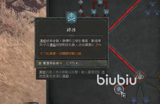 接着找到永冻之霜,将这个被动技能点满,如果有多的点数,可以将旁边三个小强化也全部点满。而最后选择的关键被动技能时,我们选择碎冰,点亮它可以让敌人冻结的时候造成爆炸,并有几率瞬间击杀掉。游戏新上线的时候肯定玩家非常多,这里建议大家可以使用biubiu加速器,这个加速器拥有非常快的游戏加速通道,可以完美地避免延迟慢画面卡顿这些困扰。新人还可以免费领取3天会员加速时长。