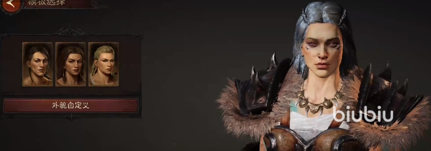 进入游戏,我们选择职业野蛮人,选择女性。然后会进入调整面部的界面,女性野蛮人的特征具有一定的野性和力量感,有着深邃的眼窝、厚实的嘴唇、健硕的肌肉等等,这些特征也很符合职业的设定。