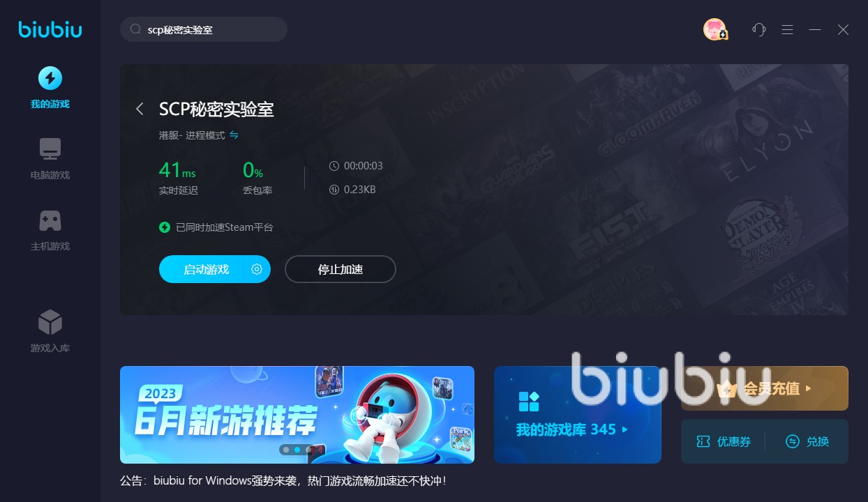 2023年06月15日 14:32 来源:狂战多末入蛾对于科幻题材的游戏,在市面上一直都是非常受还原度,尤其是scp秘密实验室这种把多个元素进行结合的玩法,小伙伴们需要在实验室里面去努力寻找全新的出路,今天和大家说说scp秘密实验室延迟要开加速器吗,如果说自己的网络环境没有问题,但是却依旧出现卡顿或者是延迟特别高的问题,那么基本都是因为海外服传输链路太长导致,这个时候建议是使用biubiu加速器来帮助自己解决,朋友们要是对此感兴趣的话,就接着往下看吧。