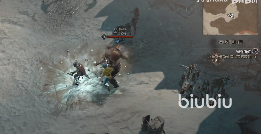 在暗黑4中,我们接到物有所值支线任务后,前往破碎群峰右上方的村庄墨涅斯塔,找到头上有蓝色感叹号的NPC和她对话,然后会有提示,我们根据提示前往村子的上方,找到鲁斯卡斯找他要宝石款项,但是这个家伙不会老实交给我们,需要和他进行战斗,击败后,他才会给我们。