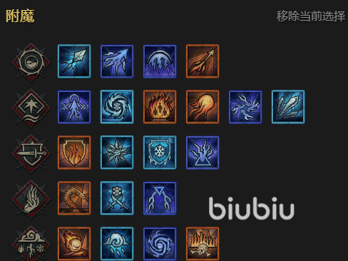 附魔插槽,是法师独特的机制,玩家们可以选择两个技能进行附魔,第一个附魔槽需要15级解锁,第二个则需要到30级才能解锁。将自己想要附魔的技能放入到下方的附魔栏中,就可以为技能添加额外效果。但是这里放入的技能必须是有投入技能点或者装备上带了技能等级的才可以,如果技能显示为暗淡状态,则不能进行附魔。