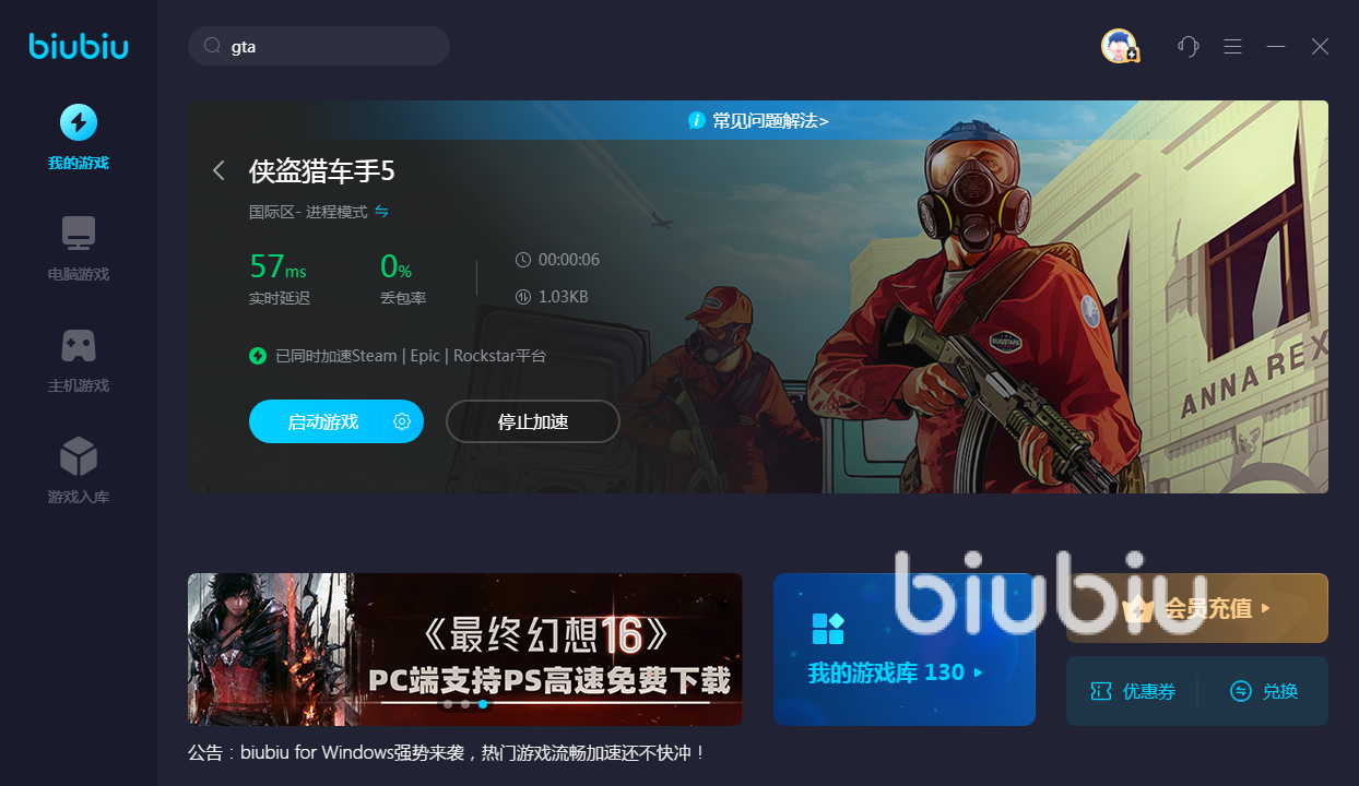 希望今天小编带来的gta闪退完美解决方法详解能够帮助到大家,毕竟造成闪退原因很多,我们无需去重点了解,只需要搞清楚如何去解决就已经足够了。而且利用该软件去优化网络是目前性价比极高选择,可以轻松获得流畅环境。