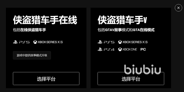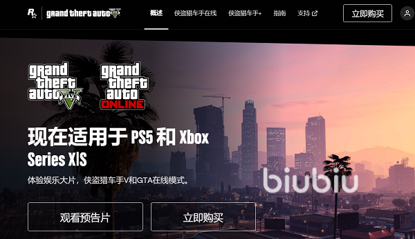 打开网页后在右上角会有账号登录和立即购买的按钮,我们点击立即购买,之后就会出现一个弹窗,上面显示着侠盗猎车手在线和GTA5的平台选择。这里我们按自己所需要的平台去点击就可以了,点击之后就可以进行购买了。购买好后下载安装包进行安装就可以了。