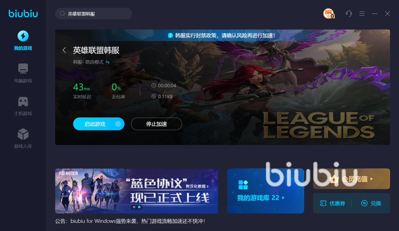 lol玩韩服需要加速器吗?这个问题必然是需要,小编也干脆向大家介绍了平时玩韩服经常会用的biubiu,要是真想在韩服修炼个人技术的话,低延迟才能让你将自己的水平真正发挥出来。