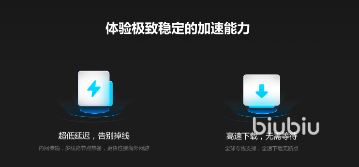 这款游戏可以说对于网速要求也是比较严格的,一旦体验过程中出现卡顿掉线,玩家们就将受到不可逆转的损失。小编建议大家先准备一个biubiu加速器,我们可以使用这款加速器快速的优化当前网络状态,能够帮助我们最大限度避免因为网络延迟所带来的一系列问题,提供最稳定的加速服务给大家。