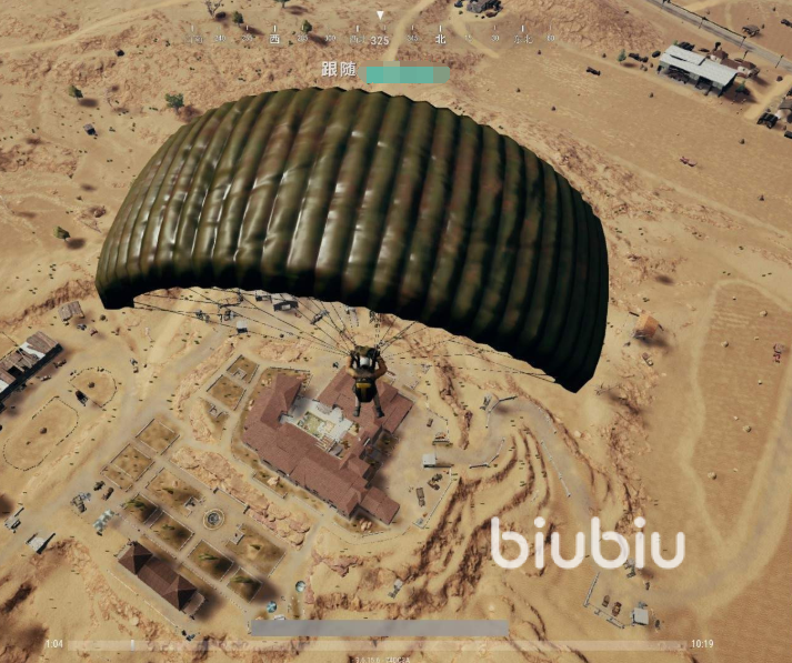 上来还是一样在飞机上查看路线,然后观察地形看到一个类似于庄园一样的房子就直接按F跳伞,你可以根据自己的距离调整速度,镜头面向哪里就会朝哪里移动,按住W会让你更快一点,最好是落在大门口然后直接进屋找枪。