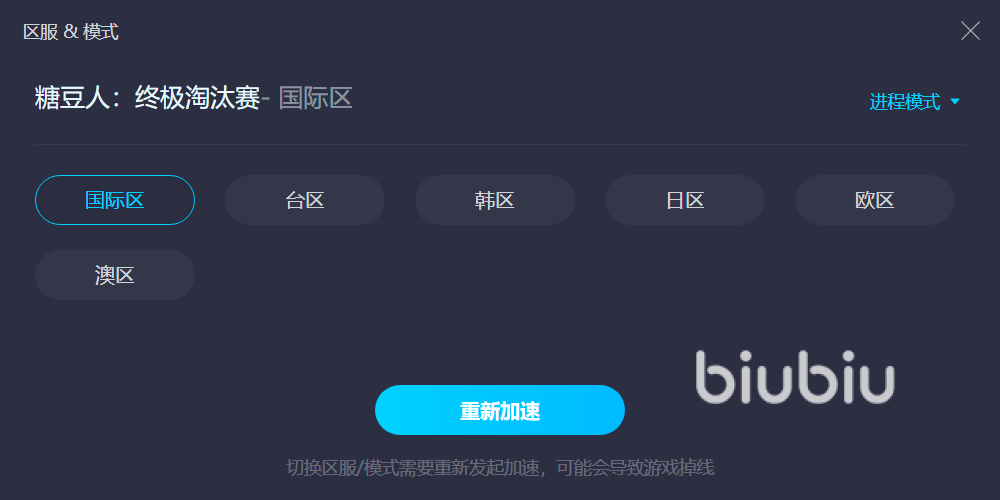 而加速糖豆人终极淘汰赛这款游戏也比较简单,因为它有多个区服,玩家可以在主页上搜索游戏的名字后,自行选择需要加速的北美区、港服或者国际服。而且游戏平台有steam、Xbox、switch等,玩家们也不需担心,因为biubiu支持多平台加速,个人账号都通用,只需一个号就可以给成千上万款游戏加速。