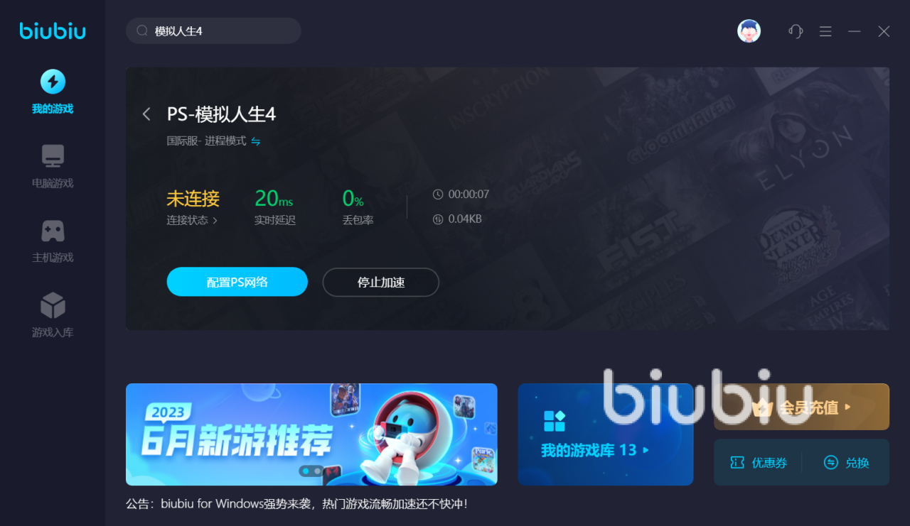 biubiu加速器是一款专业的游戏加速软件,在同类型加速器里性价比更高,不仅可以加载PC端的模拟人生4,还能够加载PS、Xbox平台,提升全体游戏环境。现在新人注册可享免费加速3天,让各位以前没有用过加速器的小伙伴好好体验一番。
