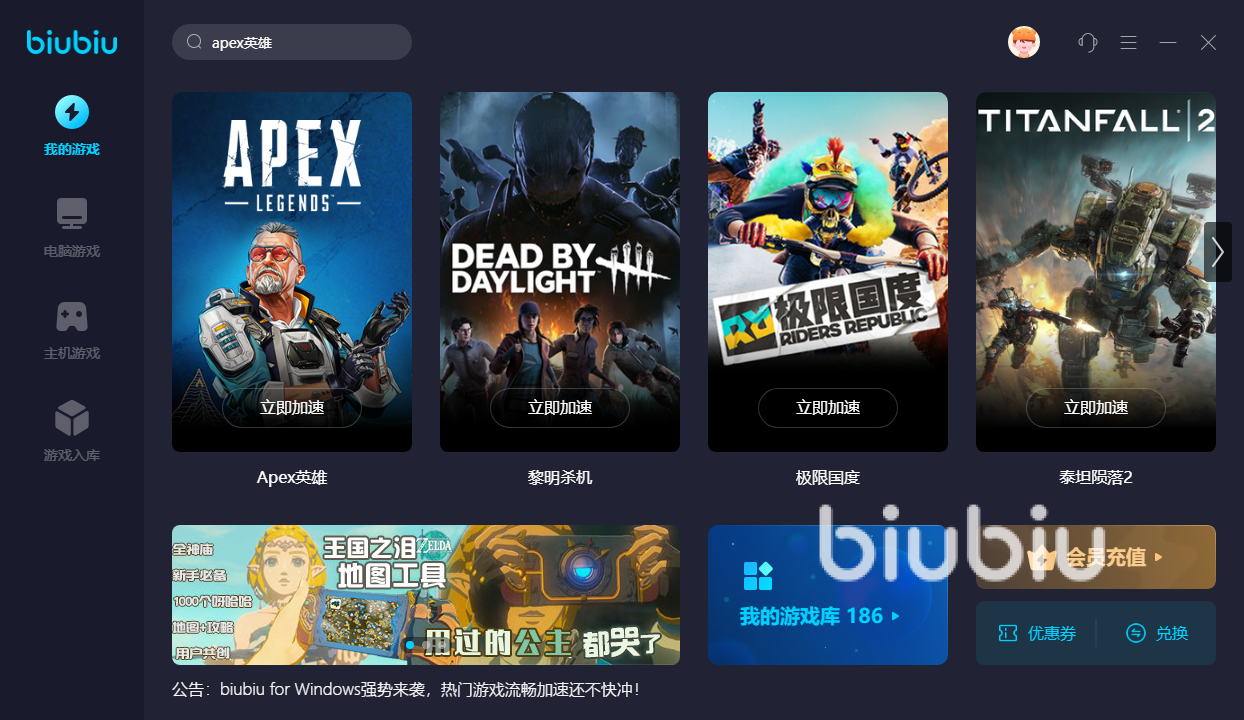 2023年06月30日 15:45 来源:吞噬再大针蜂很多玩家对于战术射击类的游戏很是喜欢,其中以apex英雄的人气较高,里面拥有海量的英雄可以提供给各位去选择,并且在玩法上也是有着自己的特色,今天小编就来和大家说下apex英雄需要加速器吗,如果说自己的网络延迟很高,同时卡顿情况严重,那么肯定是需要用到的,不过在选择方面,需要去综合考虑,比如体验海外服的朋友,那么就需要用到专线级加速工具,像biubiu加速器就是其中之一,那么它到底怎么样呢?下面就一起来看看它有哪些方面的优势吧。