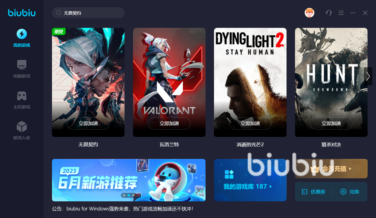2023年06月30日 15:43 来源:神速中猫老大3在竞技玩法的游戏中,拥有着许多不同的类型,而无畏契约所采用的就是经典5v5模式,并且里面能够选择的英雄也是众多的,很多玩家都不清楚无畏契约要开加速器吗,其实这类依赖于玩家操作的游戏大部分都是可以去通过加速工具来优化网络的,因为只有这样才能让玩家打出极致的操作,利用技能的连招和时机的把控来秀翻对手,在相关工具的选择上,很多朋友不清楚,其实小编认为biubiu加速器就是个不错的选择,下面就来看下它究竟是有哪些优势吧。