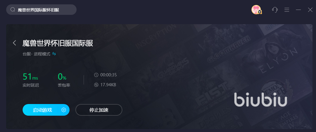 看到这里相信大家也明白了今天这一篇文章的意义了,没错,为的就是能让更多的魔兽玩家能够畅玩怀旧服国际服。那么这一点该如何做到呢?首先要做的肯定是帮助大家解决网络问题,使用游戏加速器是解决玩国际服网络延迟的一种办法,这里小编向大家推荐biubiu加速器。