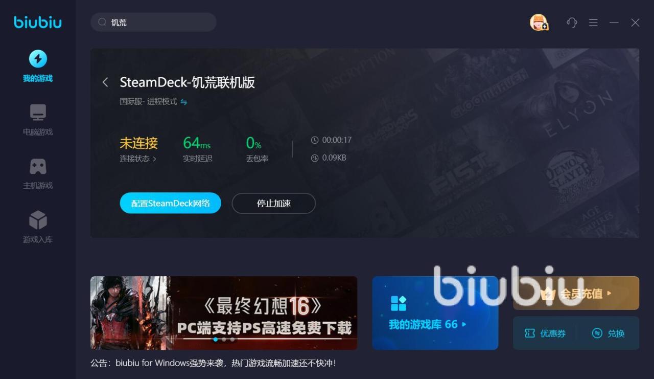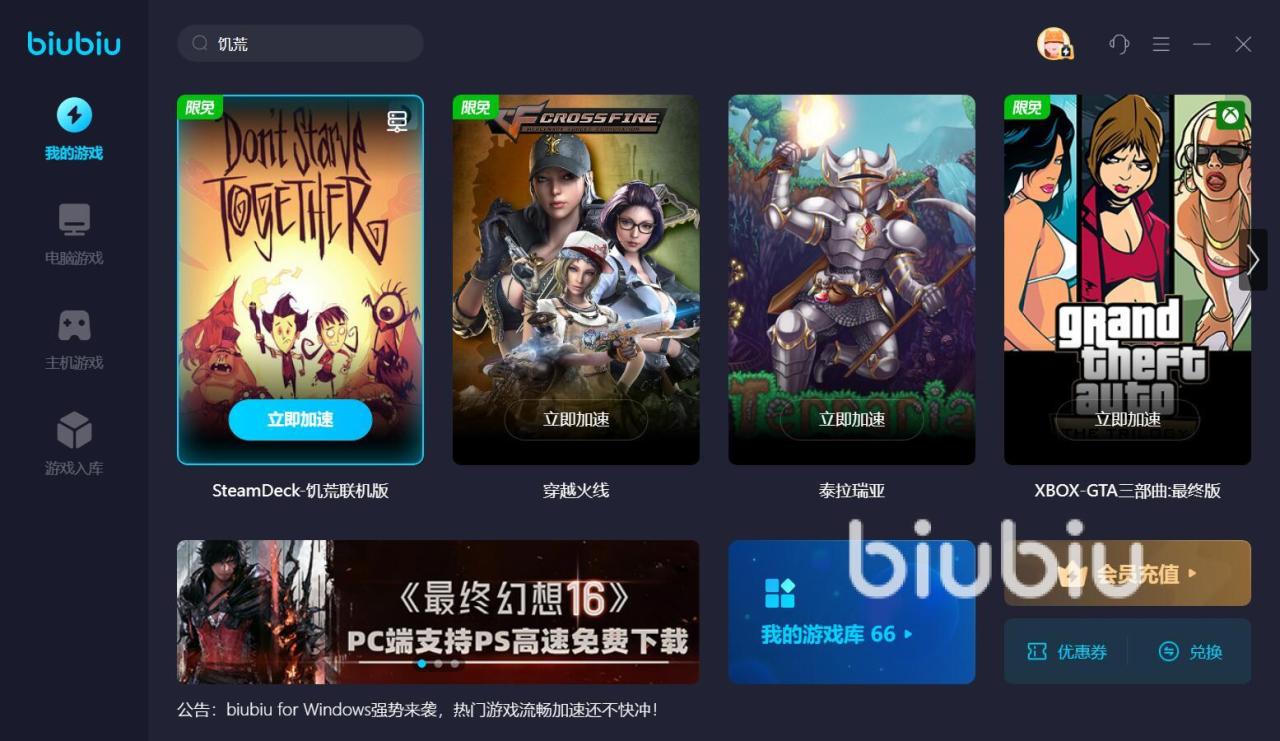 饥荒一个人玩,也能收获许多快乐,但它的精髓还是合作冒险,特别是和几个老友,一同经营家园,外出打怪探索,可以很好地打发无聊的时光,但联机时,如果网络经常断开,或者不太稳定,那么很影响实际体验,这时,你就需要biubiu加速器的帮忙了。该软件内包含了多项功能,其中的加速服务,可以维持一个可靠的游戏环境,避免掉线、黑屏、卡顿等现象发生。想要启动这个服务,也很容易,先打开软件,找到饥荒的加速入口,接着点一下立即加速就行了。
