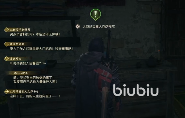 首先找到大浴场负责人克萨韦尔与他对话,他告诉我们浴场的热水突然变得十分滚烫,就算用魔法冷却也来不及降温。他拜托我们去南门不远的地方调查下石灰华阶地,而我们需要绕一个大圈才能到达目的地,所以这里推荐大家骑上坐骑前往那里。