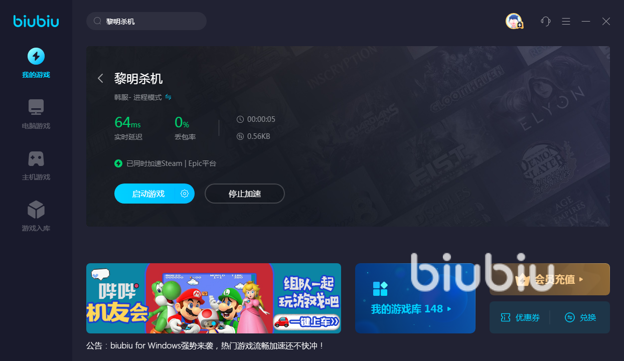 玩家可以扮演逃生者和屠夫,从中任选其一加入到阵营中。两方实力差距非常大,屠夫拥有绝对压倒性力量,逃生者在其手中毫无反抗之力,但是可以利用很多地图中道具以及地形摆脱追击。只需要将发电机修复后,就能成功逃离升天了。所以从胜率方面来看双方相差无几,拼的就是操作、心态以及网络环境。为了能够获得更流畅游戏过程,很多玩家都会开启biubiu加速器,利用加速软件来打开客户端,这样可以在加速通道中运行游戏,情况将会改善很多。