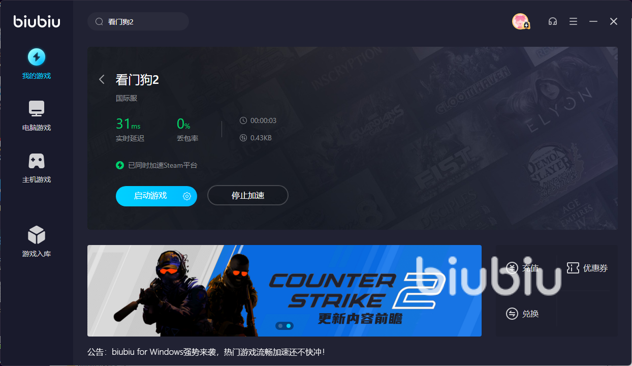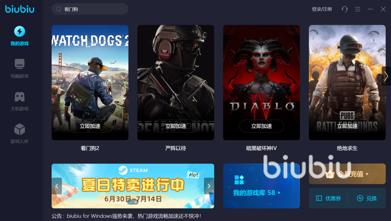 相信很多的玩家对biubiu加速器有所耳闻,这里不仅可以支持大量的手机游戏,对于pc端也推出了专业的加速服务,各大海内外的热门游戏以及主机等,满足玩家对于游戏的一切需求。后续也会有很多的作品被加速入近来,可以说包容度跟兼容性都非常的高。