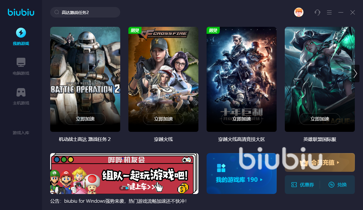 2023年07月03日 14:55 来源:蓝猫不皮卡丘如果大家喜欢高达系列的作品,那么就应该来好好看看了,今天要说的这款游戏大家应该也不会陌生,它里面拥有着超级刺激的战斗模式和超快的节奏,很多朋友都不知道高达激战任务2卡顿怎么办,如果说在各位实际的游戏体验环境中,自己的网络不给力,经常会遇到掉线或者是闪退的问题,那么肯定是不行的,所以这时候就需要大家去用到biubiu加速器来帮助自己去稳定网络,尤其是这类没有国服的游戏,需要的就是专线加速工具来帮助自己去稳定网络,而它恰好就是其中之一。