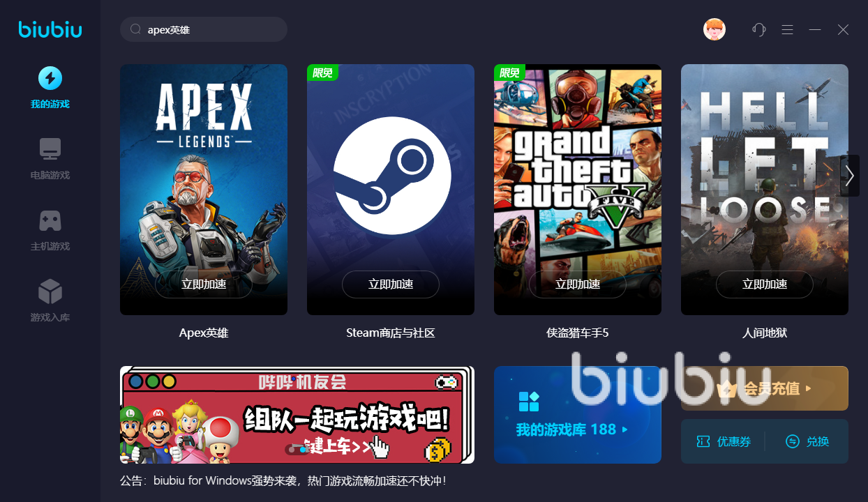 可能有些朋友会好奇,为什么小编单单推荐biubiu的这款加速工具,其实主要也是因为这款加速工具通过一键搭建专线的技术,能够为用户提供超高速的游戏加速服务,还能迅速减少与服务器连接过程中的响应时间,实现超低延迟,让大家彻底告别掉线的问题,并显著提升玩家游戏中数据包的转发速度,该工具通过全球下载专线为各个游戏平台进行网络修复,整个过程中也都能避免出现断点的情况,大幅提升了游戏文件的下载和更新速度,对于像Apex英雄这样庞大的游戏来说,它的表现是很不错的。
