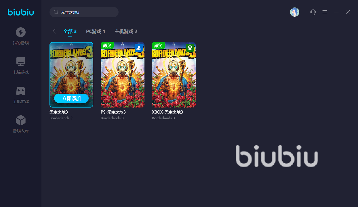 Biubiu平台可以加速的游戏很多,从图中可以看到,无主之地3也是可以在biubiu软件里搜到并添加的,并且除了无主之地3游戏以外,其它的游戏也都很多,所以小伙伴们若是觉得biubiu好用的话,可以尝试长期使用这个平台。