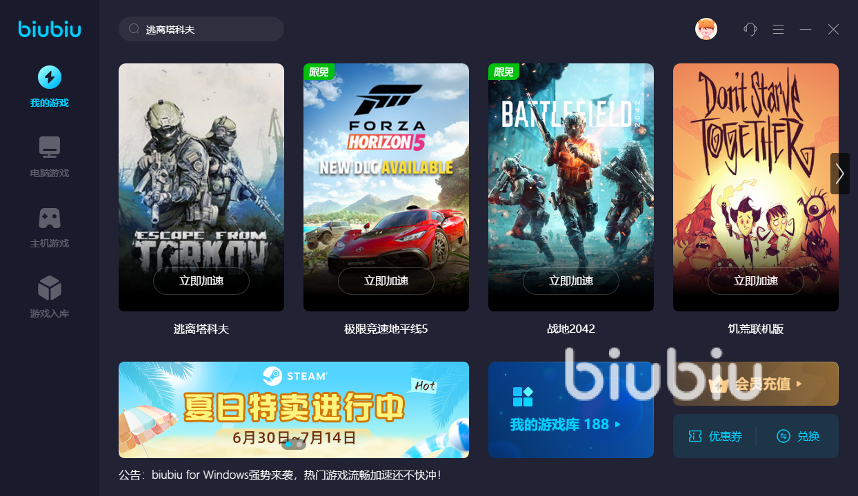 2023年07月03日 14:28 来源:巨力业库林作为一款有趣又刺激的射击游戏,它融合了FPS和rpg等多种风格,不论从游戏剧情和玩法上看都非常的不错,也是有着许多的朋友想要去解锁并体验它,今天小编就来和大家介绍下逃离塔科夫开枪卡顿怎么办,如果想让自己的游戏体验环境变得更加顺畅,那么小编认为biubiu加速器的选择就很合适,作为专线加速工具,在帮助用户去优化网络方面做的还是非常给力的,下面就一起来看下它到底都有哪些方面的优势吧。