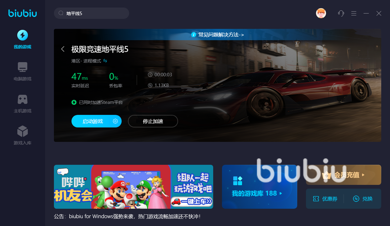 并且它还支持了联机挑战的模式,不过网络方面的波动和不稳定,让小伙伴很是头疼,该游戏是具备很强竞技性的,如果延迟很高,那么整个体验的过程都会变得非常差,为了能解决这个难题,小编建议大家可以去使用biubiu加速器来帮助自己,除了能优化用户的网络外,也是能让游戏的体验变得更加顺畅,不用在担心会有掉线的情况发生,全球高速下载支持,并且节点还具备自动切换,拥堵的情况也是能得到很好的避免。