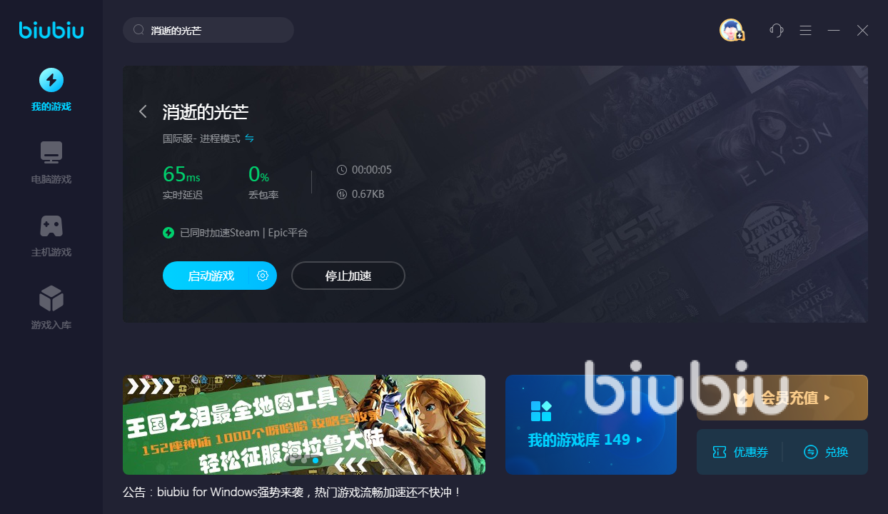 在游戏中玩家可以吸引众多僵尸,让其在身后跟随自己奔跑,从而开启非常有趣的末日跑酷游戏,在所有生存类作品中都是非常有趣的设定。如果大家对3D游戏不会出现头晕,那么频繁切换视角可以在战斗过程中获得很大优势,除了自己玩非常爽快之外,和好朋友们一起联机更是能使乐趣翻倍。但是屏幕中过多僵尸也会出现画面卡顿问题,再加上掉帧影响,非常影响心情和体验。此时利用biubiu加速器来进行优化解决,既方便又经济。